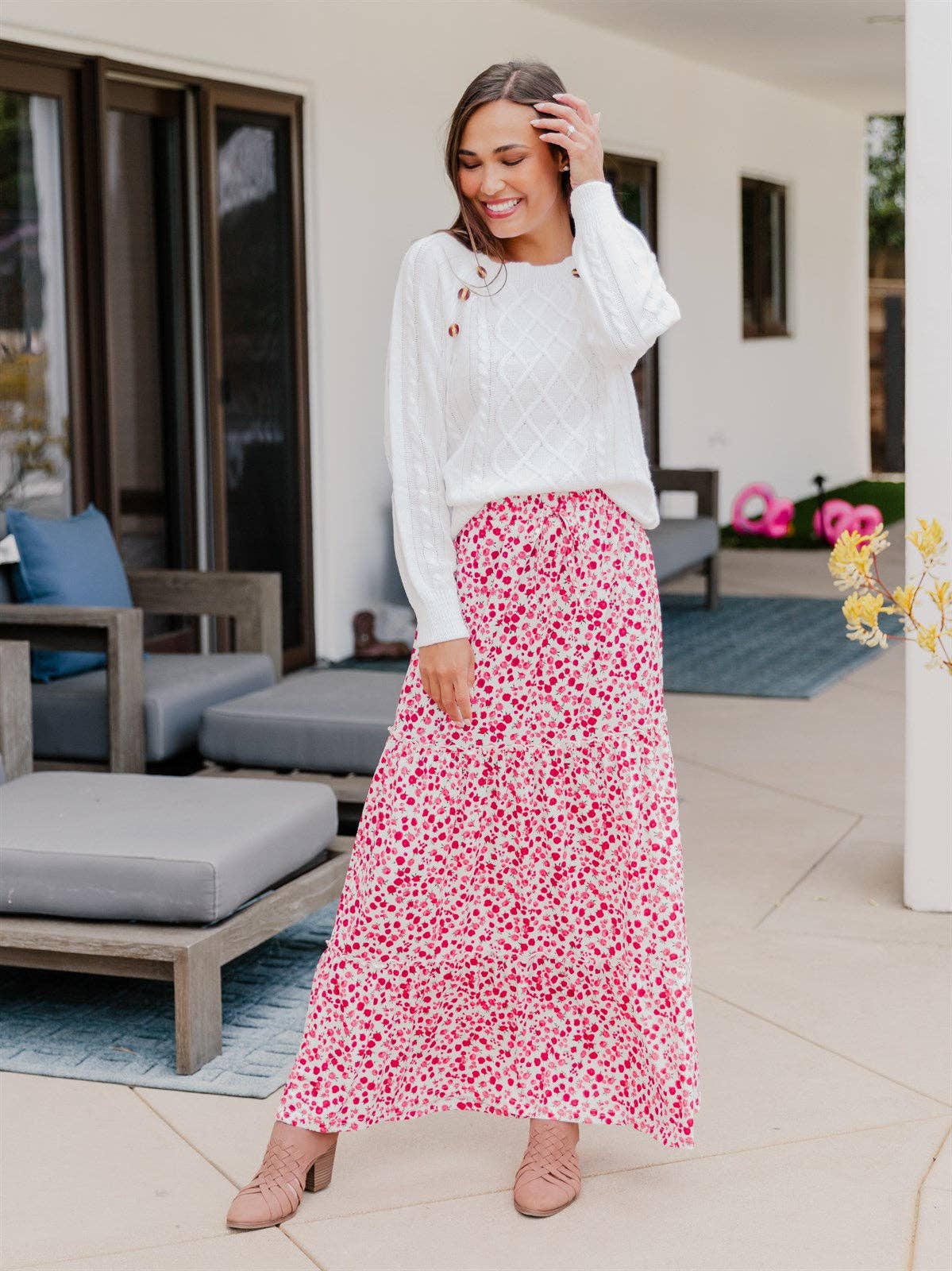 Hey there fashion lovers! Are you ready to add some fresh prints to your wardrobe? Our new Kendall Skirt is just what you need! This beautiful skirt will give your outfit a pop of color and flowy movement that will make you feel like a fashion icon. Pair it with a basic tee, jean jacket, and booties for a stylish and effortless look that will turn heads. Whether you're going out with friends or running errands, the Kendall Skirt is perfect for any occasion. Size : Small 0-4 Medium 6-8 Large 10-12 XL 12-14